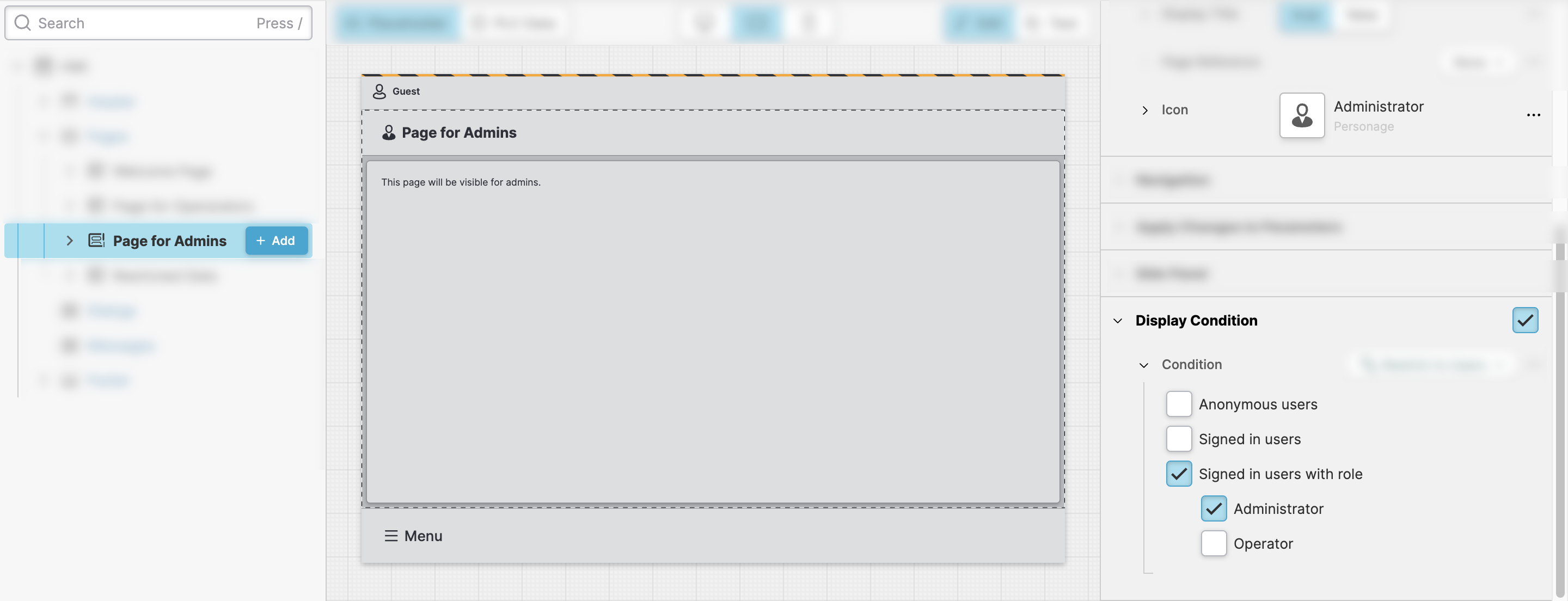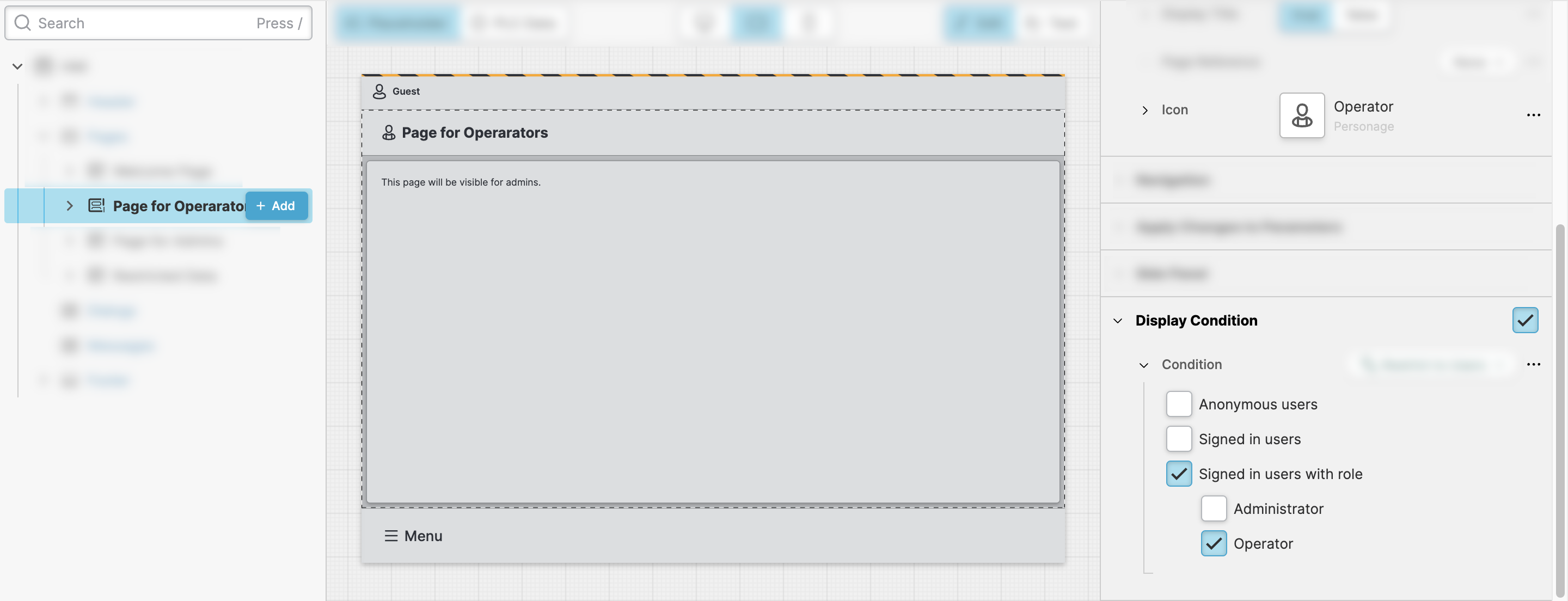 and check the Operator rule. So this page will be visible to Operators and hidden for users