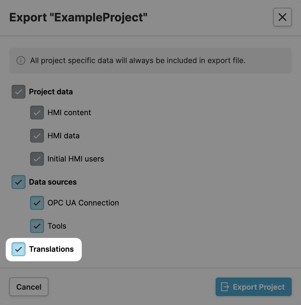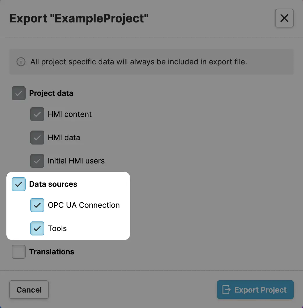 In this example we are exporting the definitions for an OPC UA Connection as well as a Data Collection.