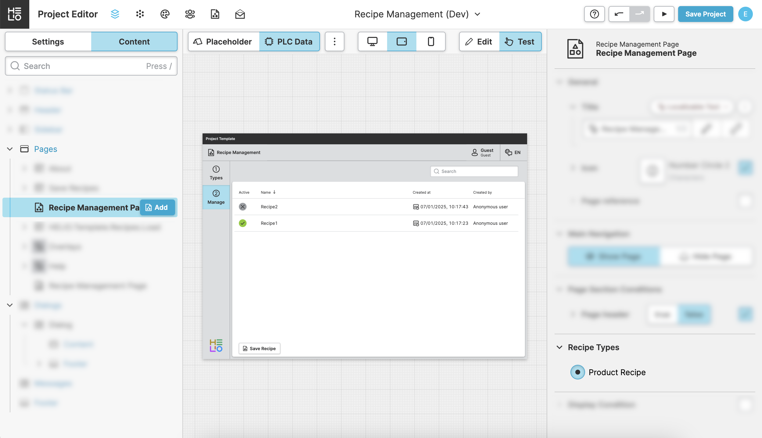 Now that we have saved some recipes, we need to list and load them. Thankfully HELIO comes equipped with the Recipe Management Page.