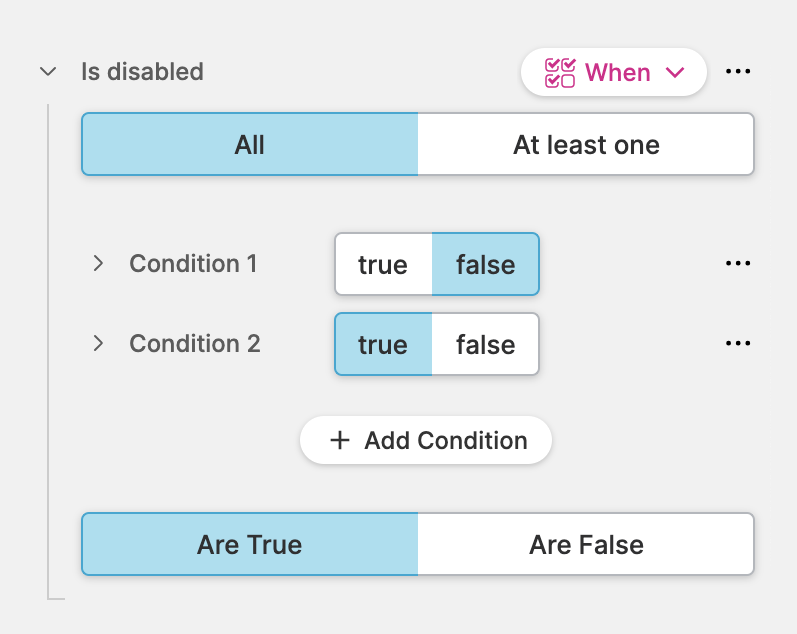 Select whether the condition(s) need(s) to be true or false.