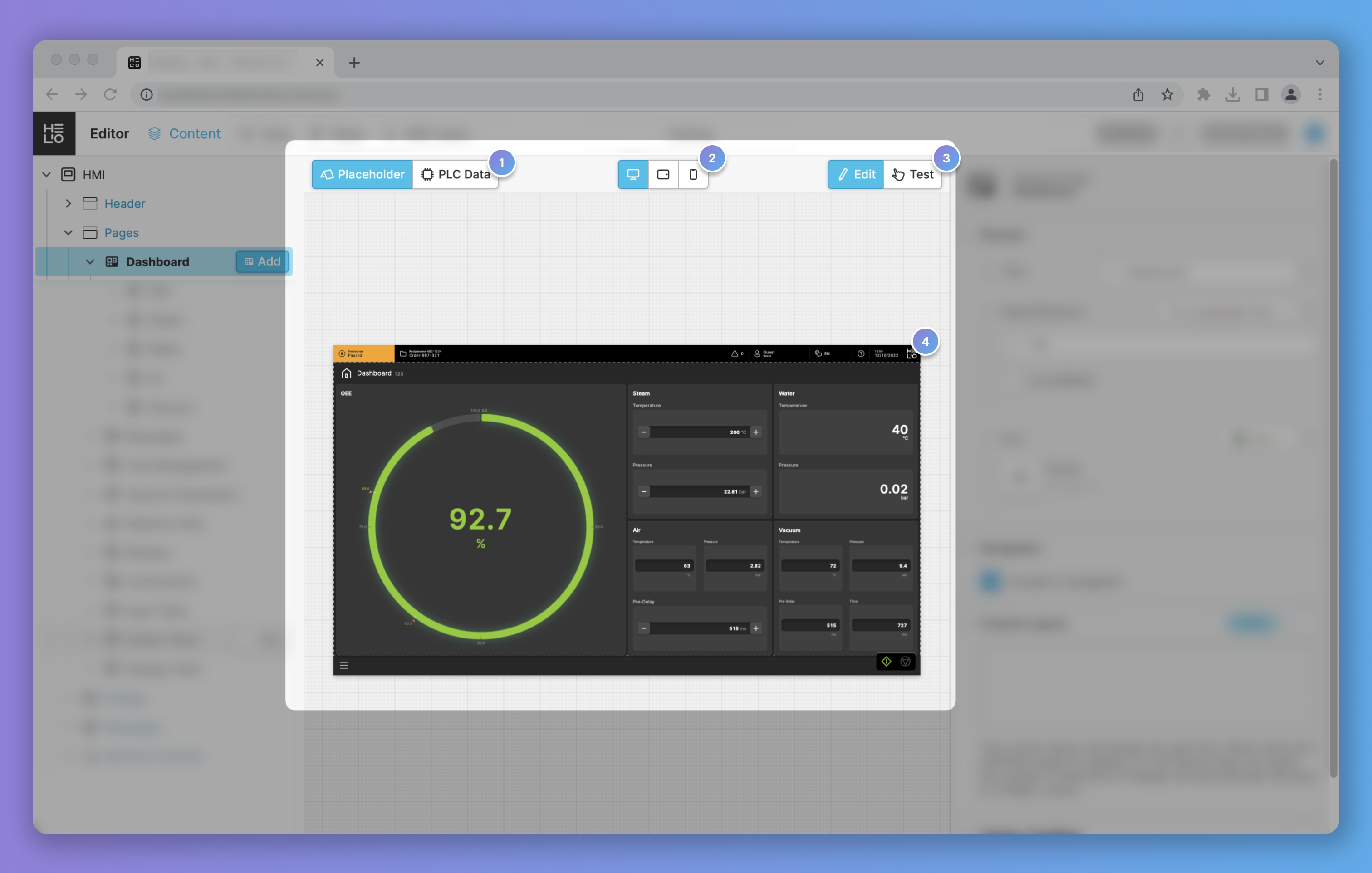 When Edit Mode is active, you can select the parts of the HMI you would like to