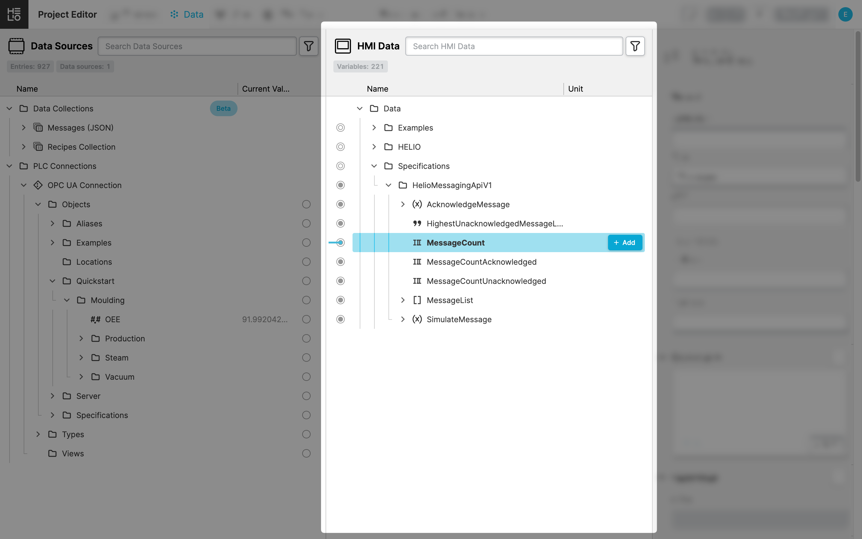 You can also define the data model inside the HMI first, and then link it to a data source later. If you want to learn more, explore the Building HMIs Without a PLC guide. Check out Data Variable Types for more details.