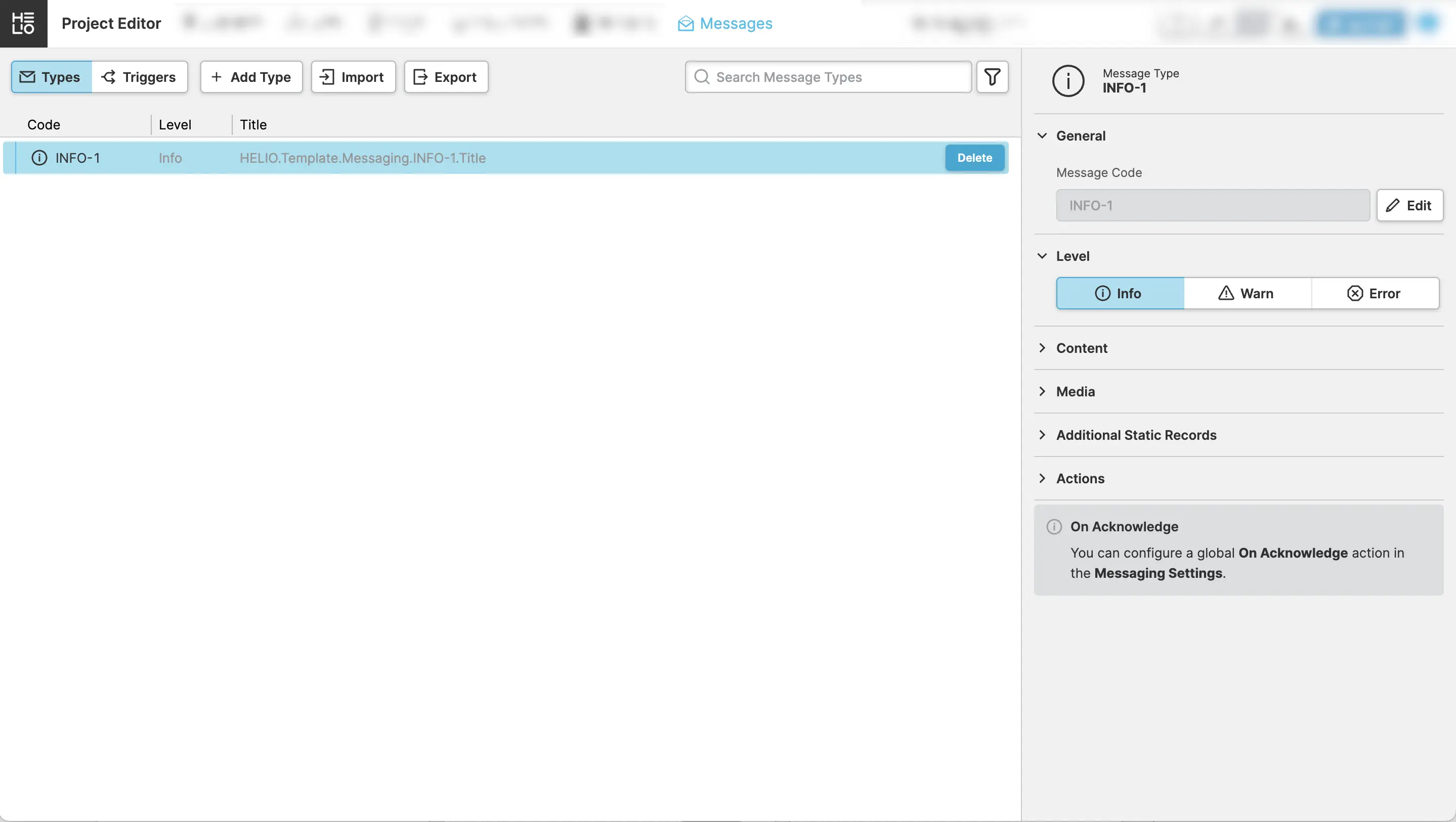 Use it to define the different types of messages and to enter the detailed content for each of them.